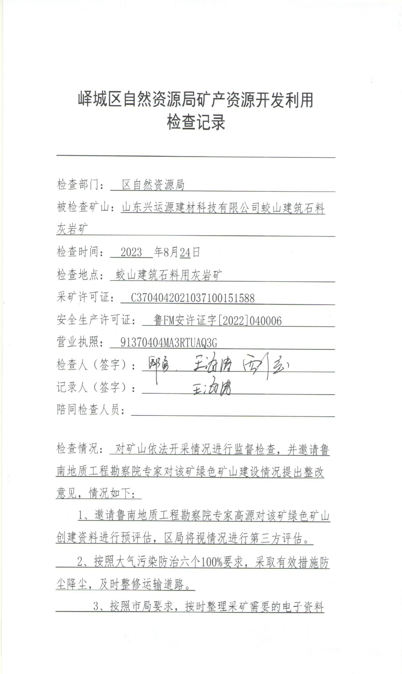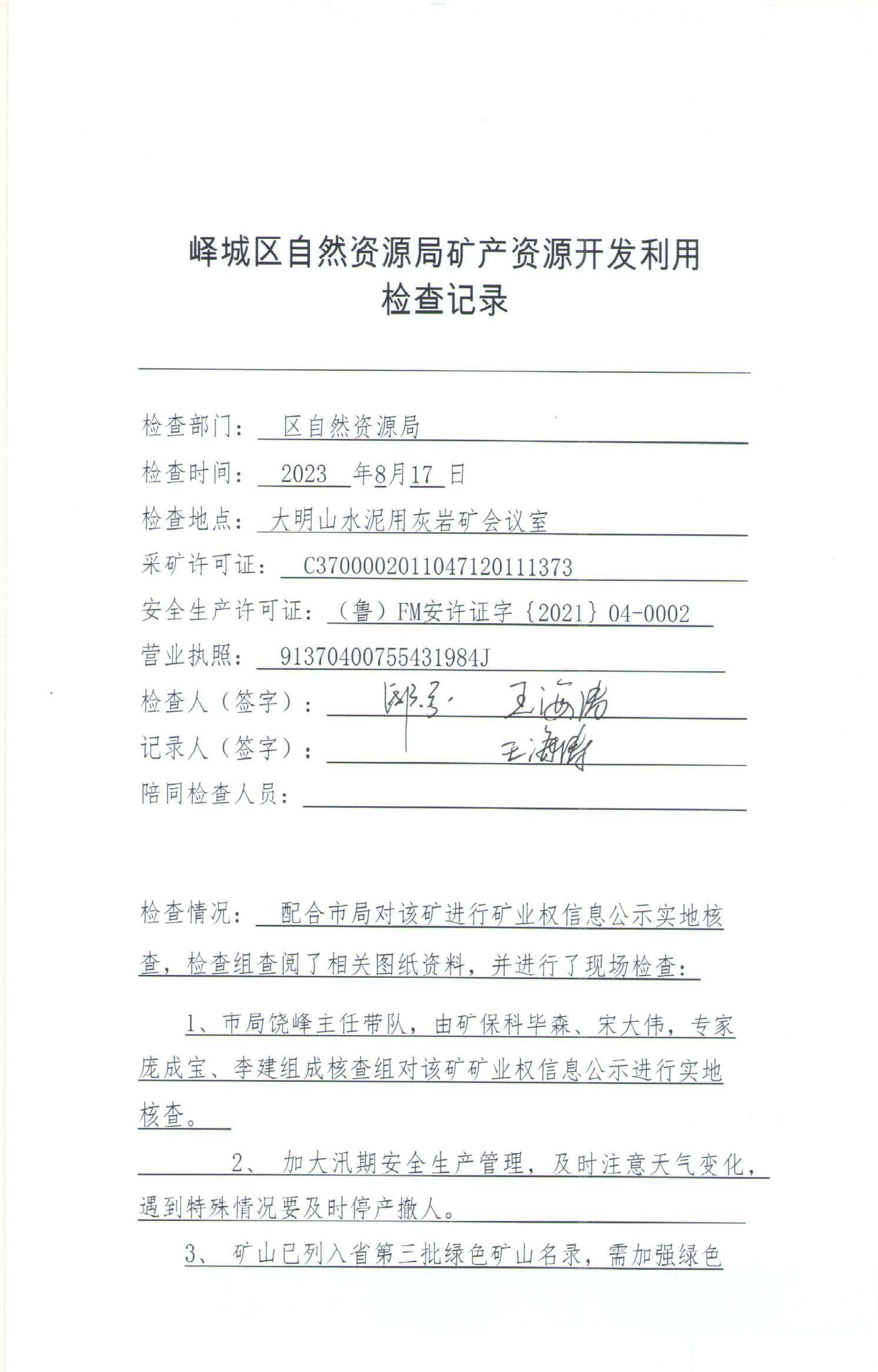 峄城区自然资源局2023年8月“双随机、一公开”检查信息