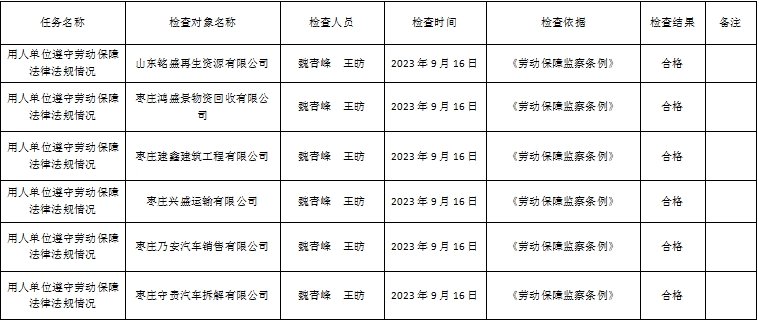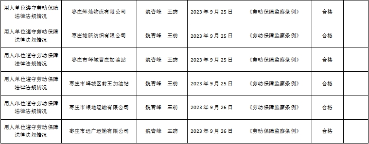 峄城区人社局2023年第三季度“双随机、一公开”检查情况