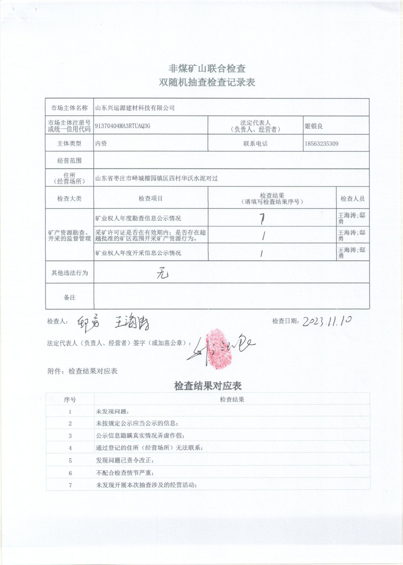 峄城区自然资源局对非煤矿山联合双随机检查情况