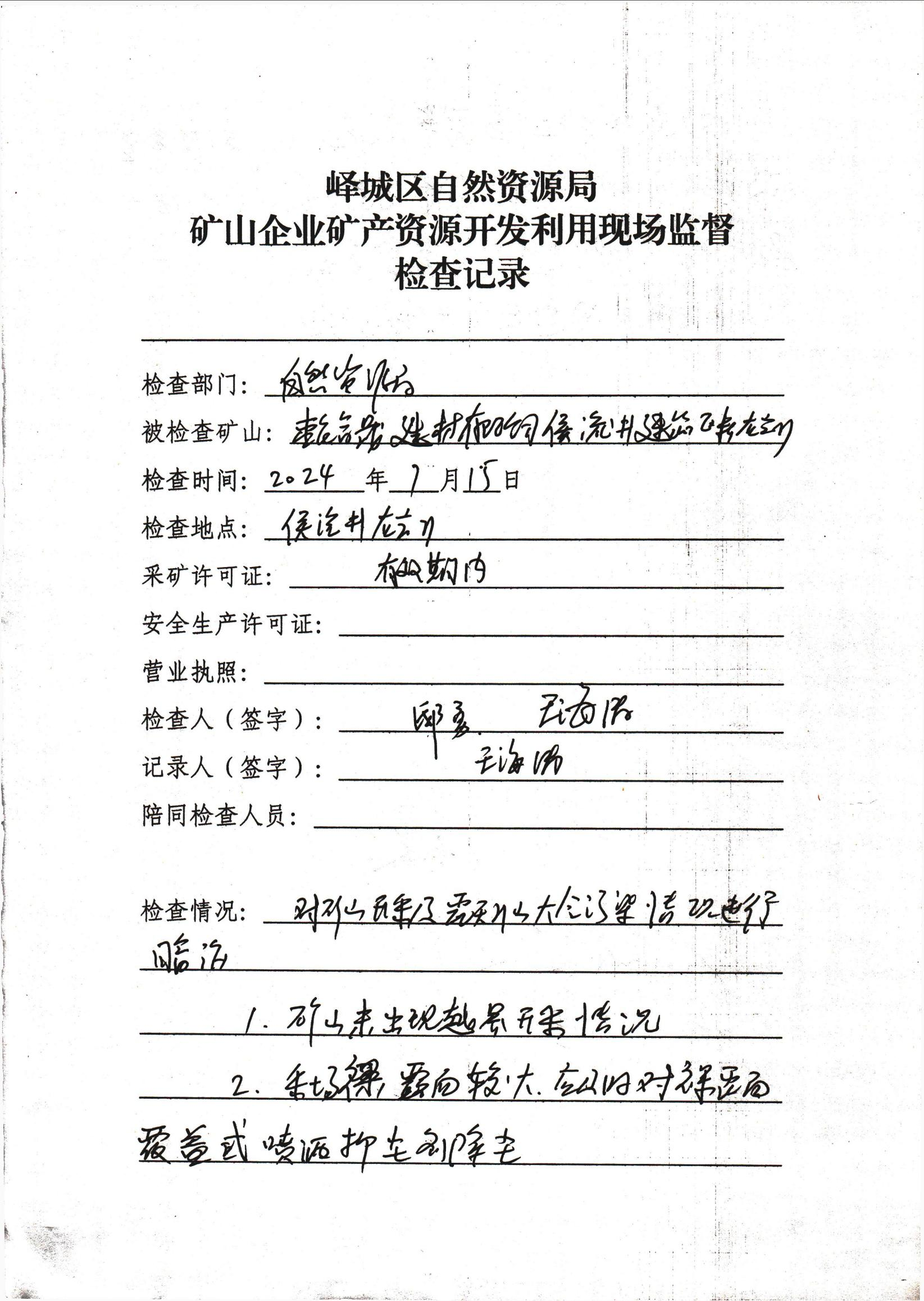 峄城区自然资源局2024年7月“双随机、一公开”检查信息