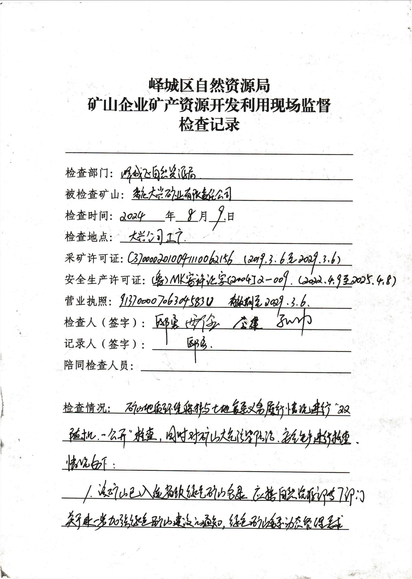 峄城区自然资源局2024年8月“双随机、一公开”检查信息
