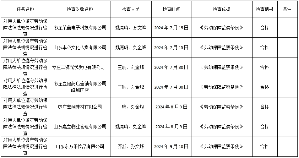 峄城区人社局2024年第三季度“双随机、一公开”检查情况