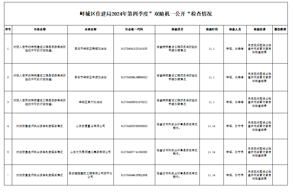 峄城区住建局2024年第四季度”双随机、一公开“检查情况