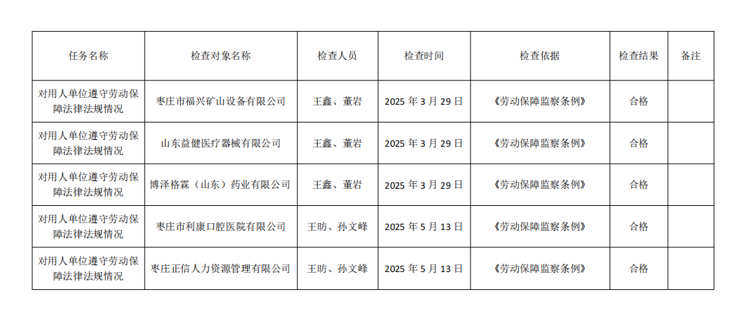 峄城区人社局2025年第二季度双随机、一公开检查情况