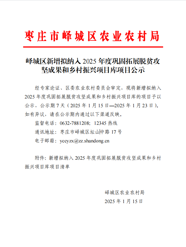 峄城区新增拟纳入2025年度巩固拓展脱贫攻坚成果和乡村振兴项目库项目公示