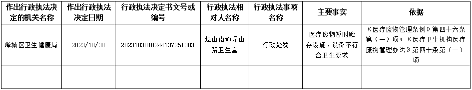 峄城区卫生健康局2023年10月30日行政处罚信息