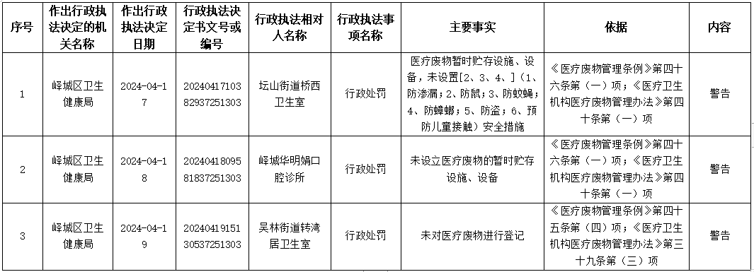 峄城区卫生健康局2024年4月17日、18日、19日行政处罚信息