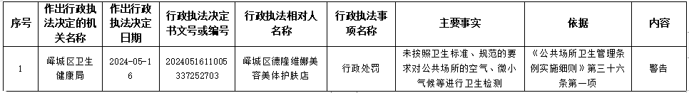 峄城区卫生健康局2024年5月16日行政处罚信息