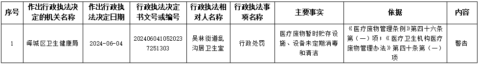 峄城区卫生健康局2024年6月4日行政处罚信息