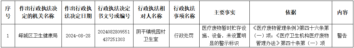 峄城区卫生健康局2024年8月28日行政处罚信息