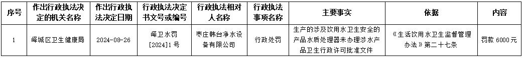 峄城区卫生健康局2024年8月26日行政处罚信息