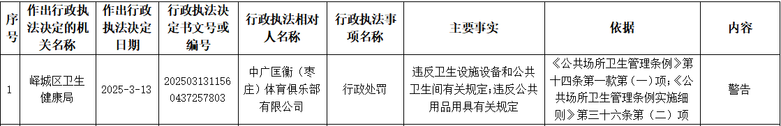峄城区卫生健康局2025年3月13日行政处罚信息