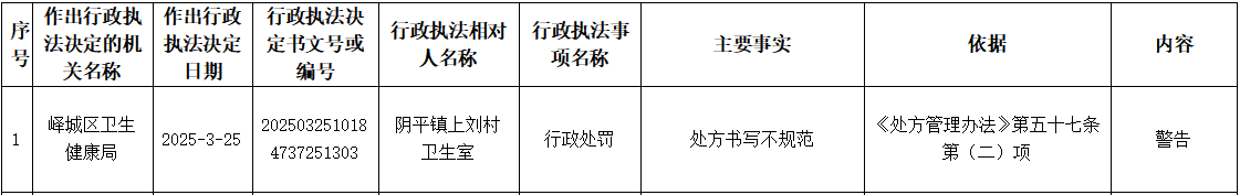 峄城区卫生健康局2025年3月25日行政处罚信息
