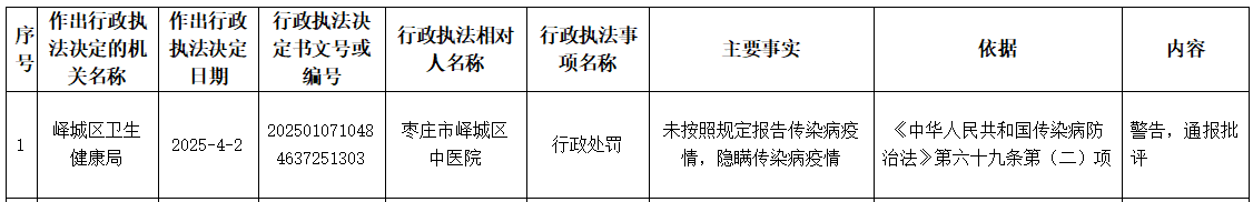 2025年4月2日峄城区卫生健康行政执法情况