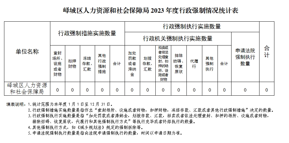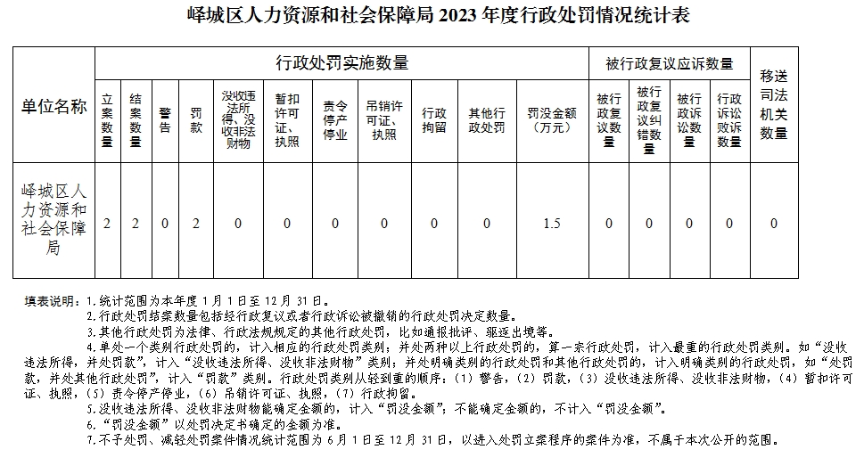 峄城区人力资源和社会保障局2023年度行政执法年报统计