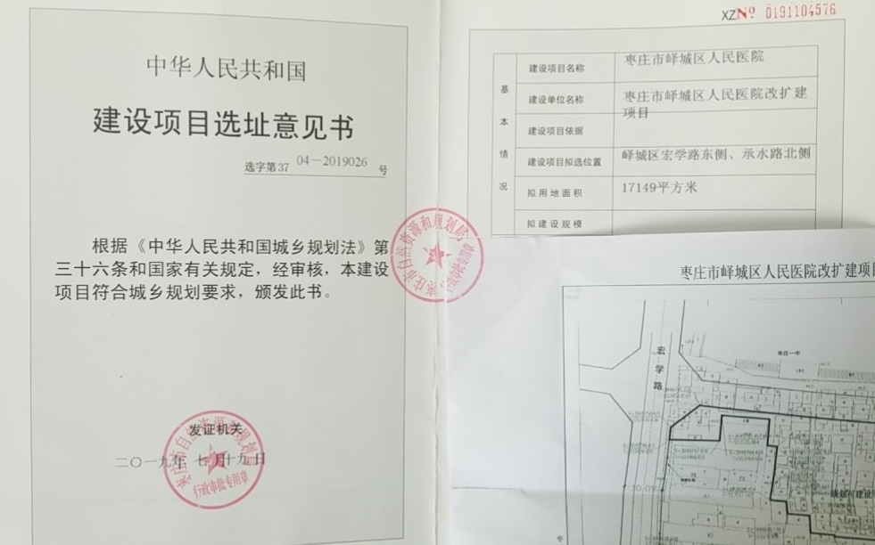 峄城区人民医院改扩建工程建设项目选址意见书