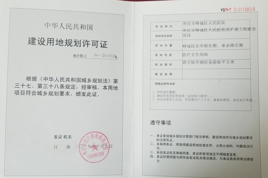 峄城区人民医院改扩建工程建设项目建设用地规划许可信息