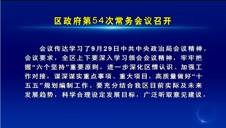 10月21日,区政府第54次常务会议召开。会议传达学习了9月29日中共中央政治局会议精神。会前,集体学习了《中华人民共和国治安管理处罚法》。会上,对项目建设、安全生产等当前重点工作进行了安排部署。会议还研究了其他事项。区领导王冲、张强、仲维光、吴敬雷、颜超、周文奇、徐兴堂出席会议。
