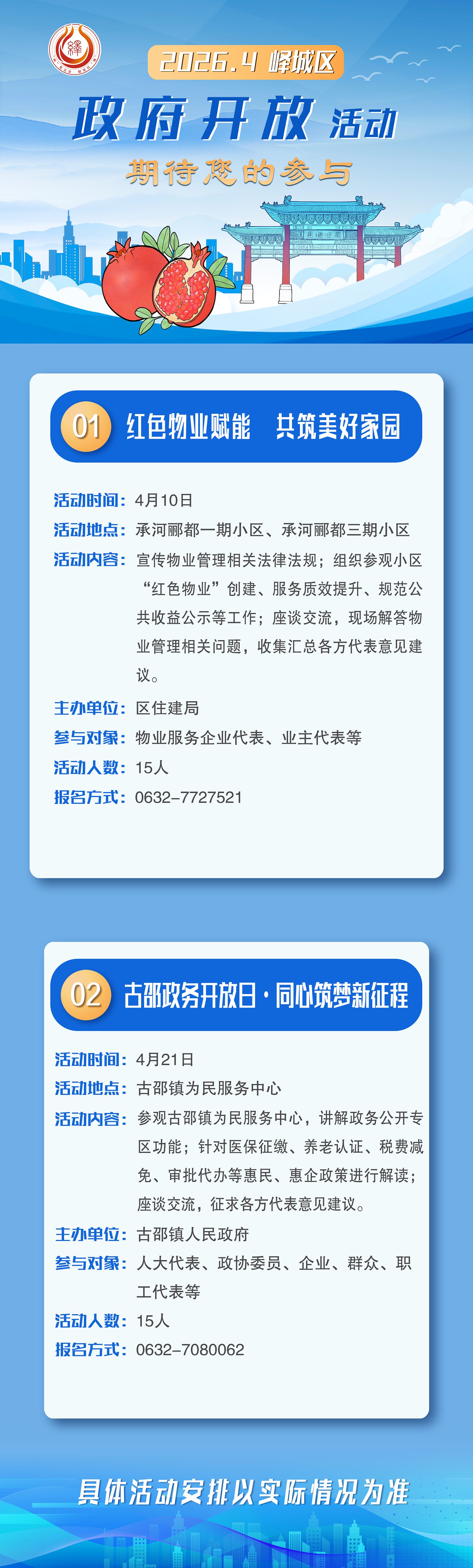 预告:2026年4月峄城区政府开放活动预告