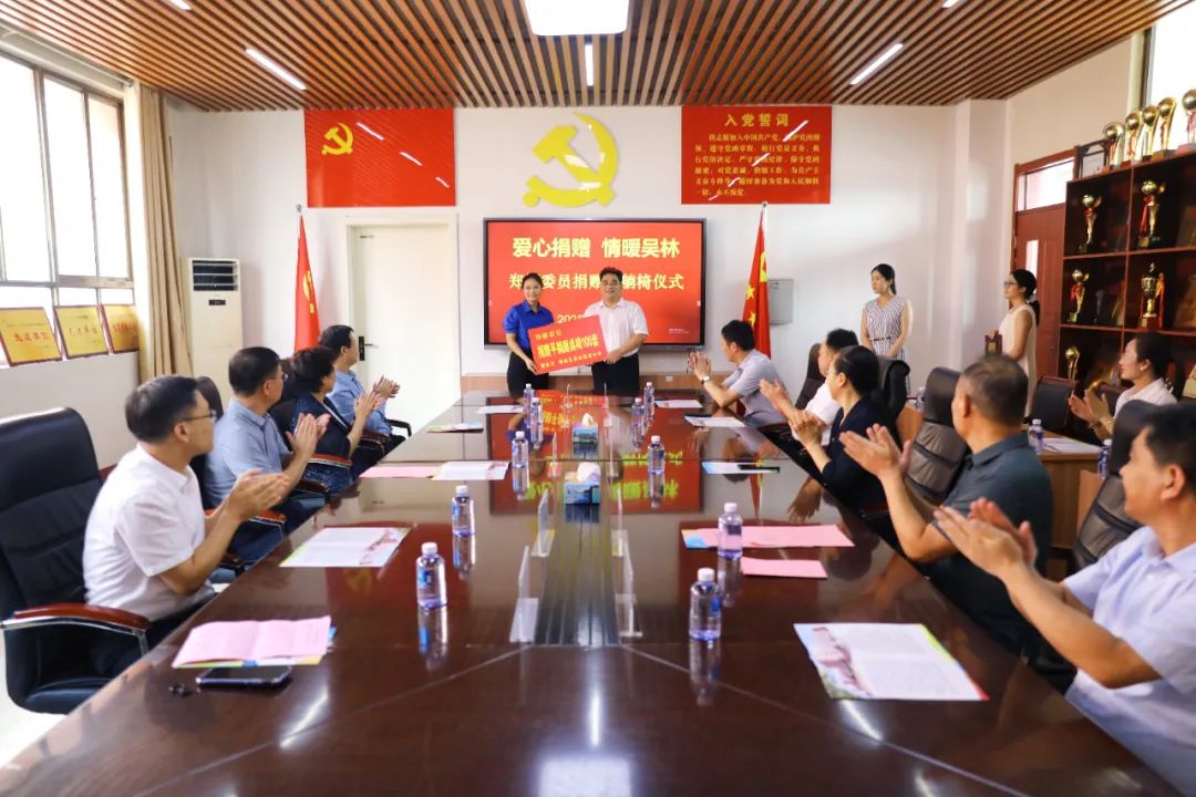 在吴林中学举行的平躺睡桌椅捐赠仪式上,市政协委员、农工党党员郑娜向吴林中学捐赠平躺睡桌椅100套,学校代表向郑娜颁发捐赠荣誉证书。