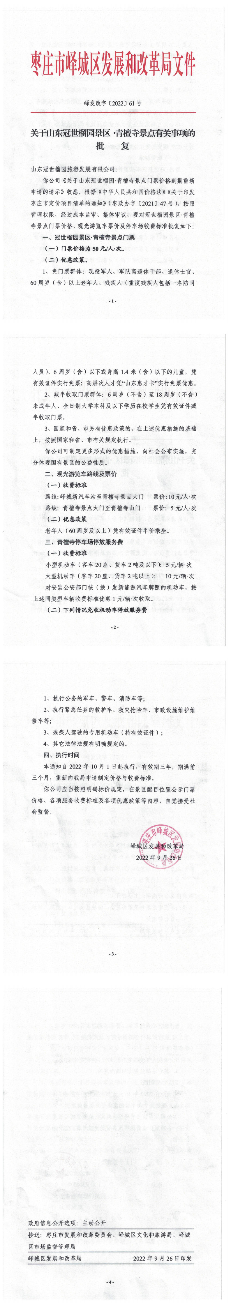 • 标  题:冠世榴园景区•青檀寺景点门票价格、游览车票价、停车场收费标准