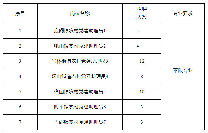 峄城区部分镇街2023年计划招聘农村党建助理员44人。