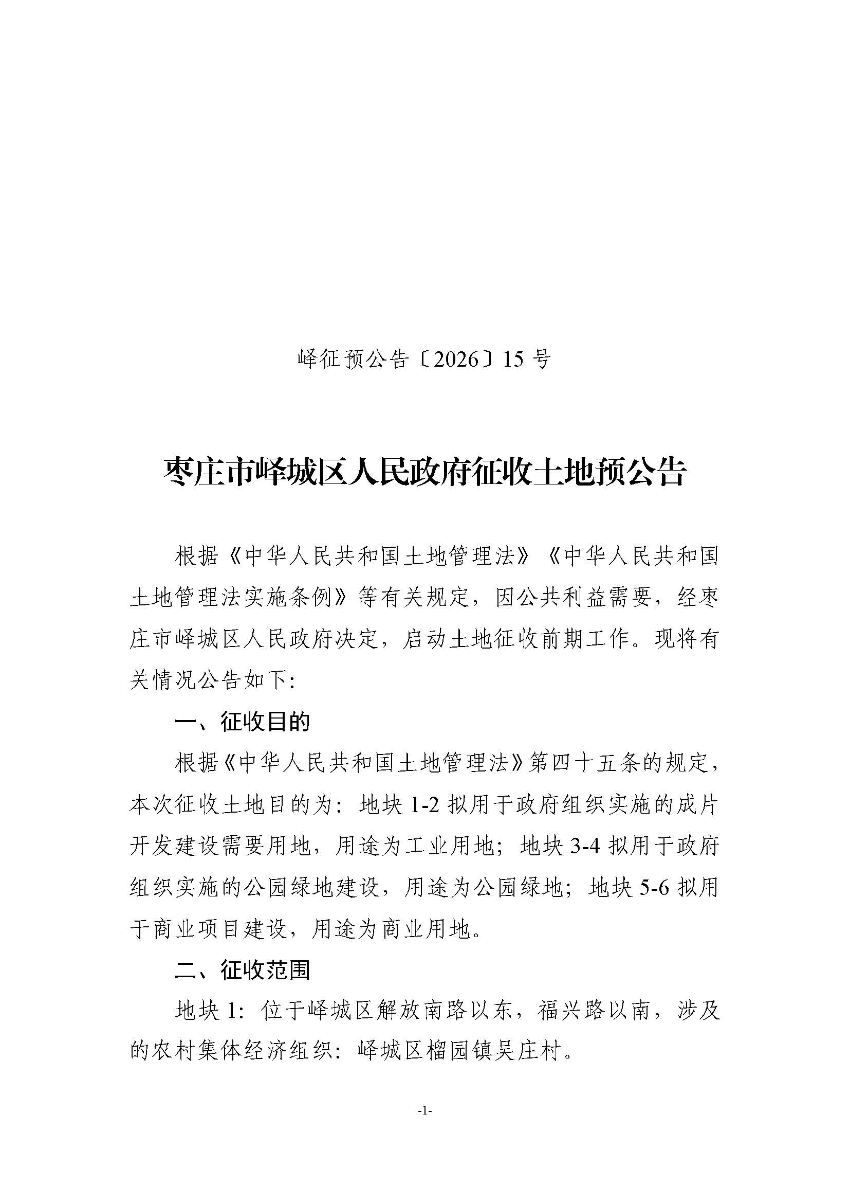 • 标  题:峄城区自然资源局发布征收土地预公告-坛山街道兴国社区;榴园镇壕沟村、吴庄村、桃花村(峄征预公告〔2026〕15号)