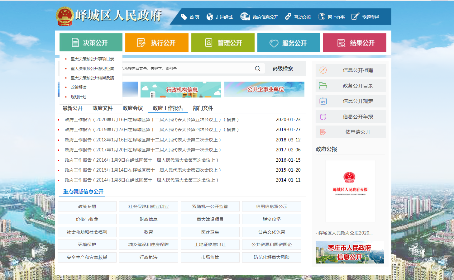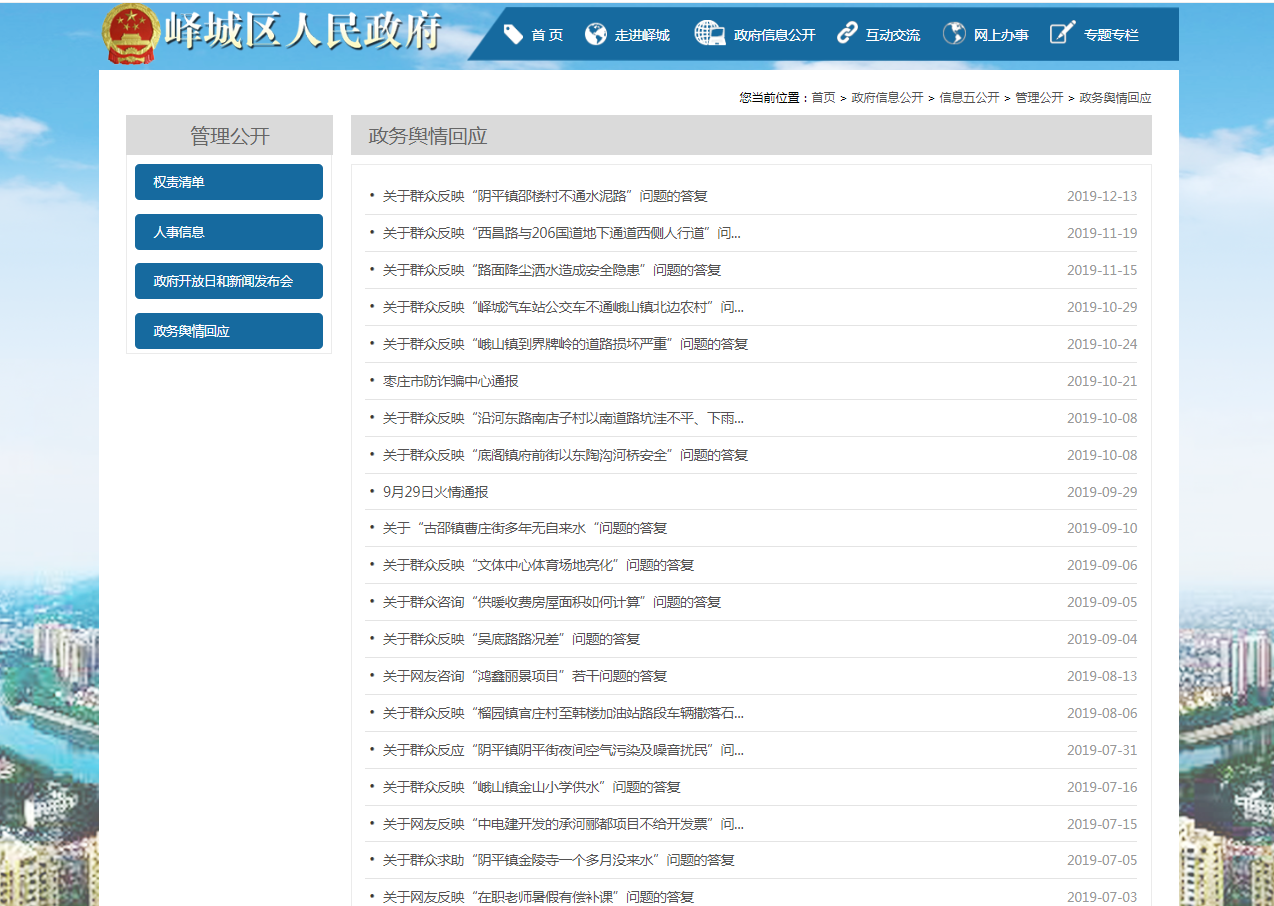 2019年峄城区人民政府信息公开工作年度报告