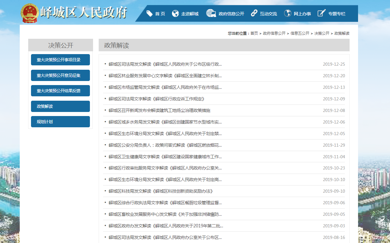 二是加强政策解读。开设了政府文件和部门文件专区,及时权威发布各项政策措施,重点围绕政府工作报告、创建健康城市、推进“一窗受理•一次办好”改革、依法行政、安全生产等重大部署,在政府网站第一时间发布文件,加强预期引导,丰富解读方式,增强政策解读传播力。
