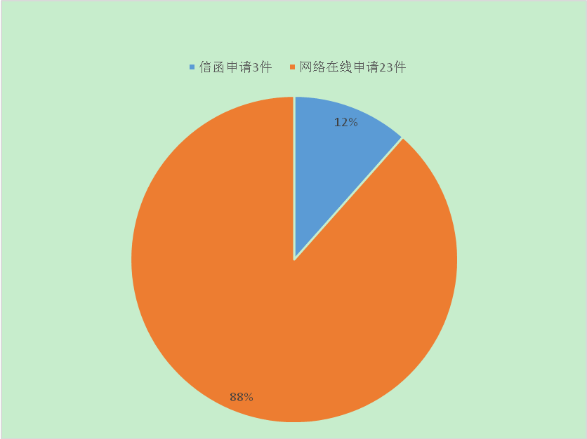 2019年,区政府共收到政府信息公开申请26件。其中,信函申请3件、网络在线申请23件。区级部门中,申请量靠前的是区公安分局、区自然资源局。申请公开的政府信息主要涉及金融诈骗、土地规划、房屋拆迁、经济数据、教育、就业、养老等领域。2019年全区依申请公开政府信息均已在法定期限内办理完毕,并以申请人要求方式予以答复。